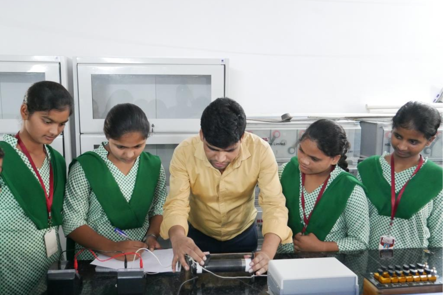 Welcome to our physics lab, where science becomes an exciting adventure!In our physics lab, you get to explore how the world works through fun experiments and hands-on activities. We have all the cool gadgets and tools you need to learn about forces, motion, and energy.Safety is super important to us. You'll wear special lab coats and safety goggles to keep you protected while you're experimenting. Our teachers will guide you every step of the wa...